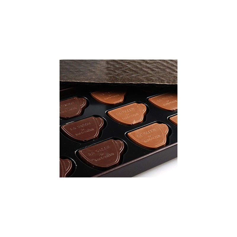 La ganache des petites tasses noires (60%) est agréable et fondante.